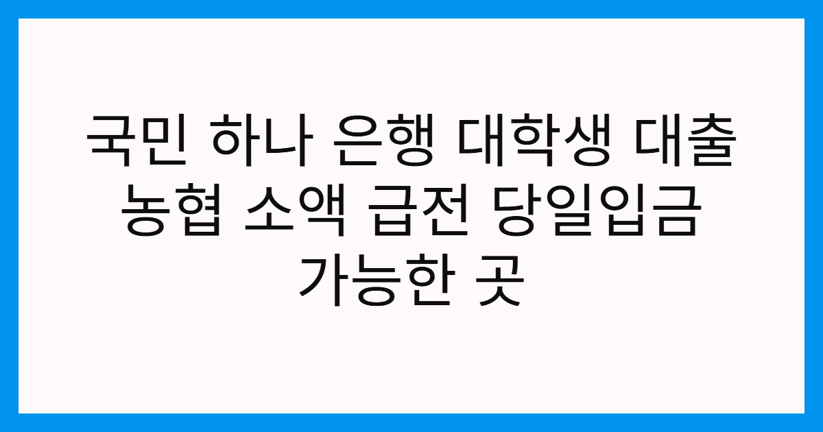 대학생이라면 학자금이나 생활비 마련이 항상 고민일 수밖에 없습니다. 특히 2025년 현재, 물가 상승과 취업 불안으로 인해 급전이 필요한 경우가 많죠. 오늘은 국민은행과 하나은행의 대학생 대출 상품부터 농협의 소액급전 대출이 어떤 조건으로 당일 입금되는지까지 가장 최신 정보를 중심으로 자세히 알려드리겠습니다.