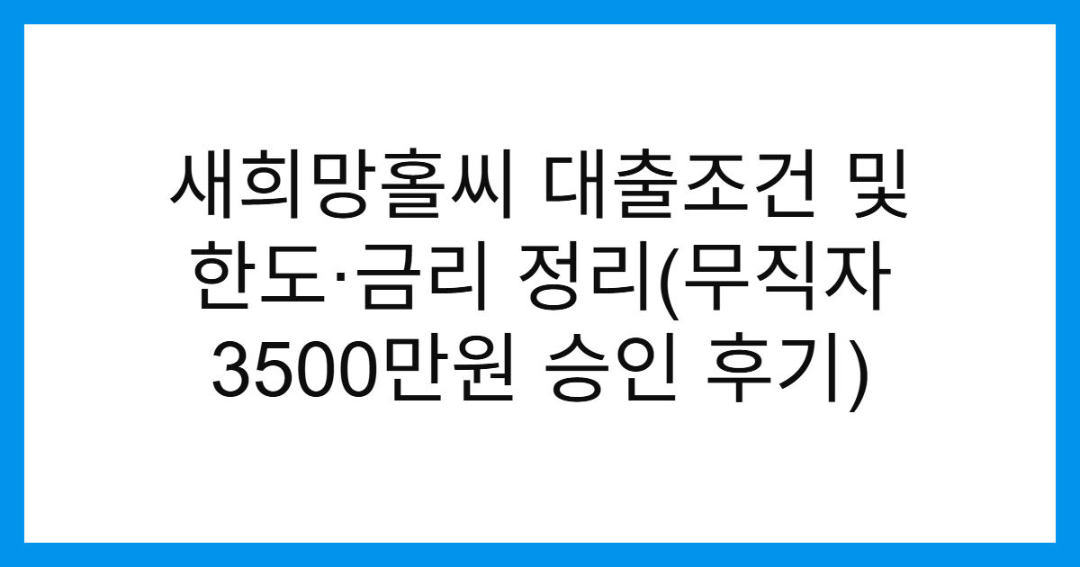 무직자 새희망홀씨 대출 신청 후기 및 팁